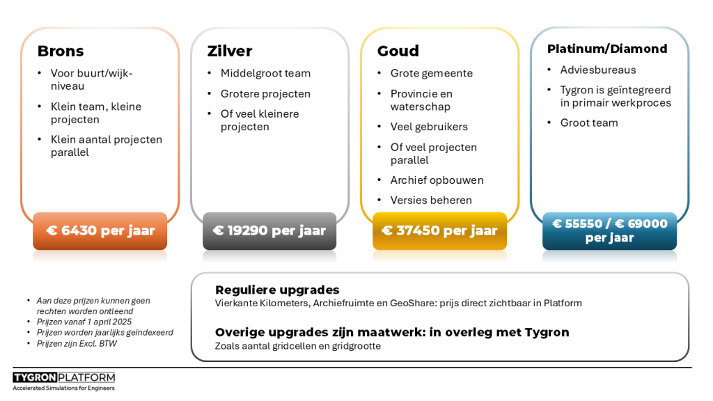 Op basis van uw gebruik van het Tygron Platform bieden we de volgende bundels en opties aan:
